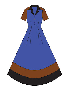 What I plan to do now is this: This dress may not even be the project I start on this week, but I will start on it soon, making sure the idea doesn't drift to the back of my mind again. I will explore the colour blocking a little further, taking option 1 as my starting point. I think I will stick with the two coloured bands at the bottom of the skirt, just because of my grandmother's story (I've actually met the friend of hers that story is about. At the time, she was also her boss at the hospital labratory where my grandmother worked before she had children and after her youngest went to school. Now, this friend is well into her 80's. A tiny, stocky lady who still is quite a character. She uses a computer, still drives a car and does charity events and plays golf every week. She's no longer that into fashion, but I'd love to have at least some of her spirit if/when I get to that age).