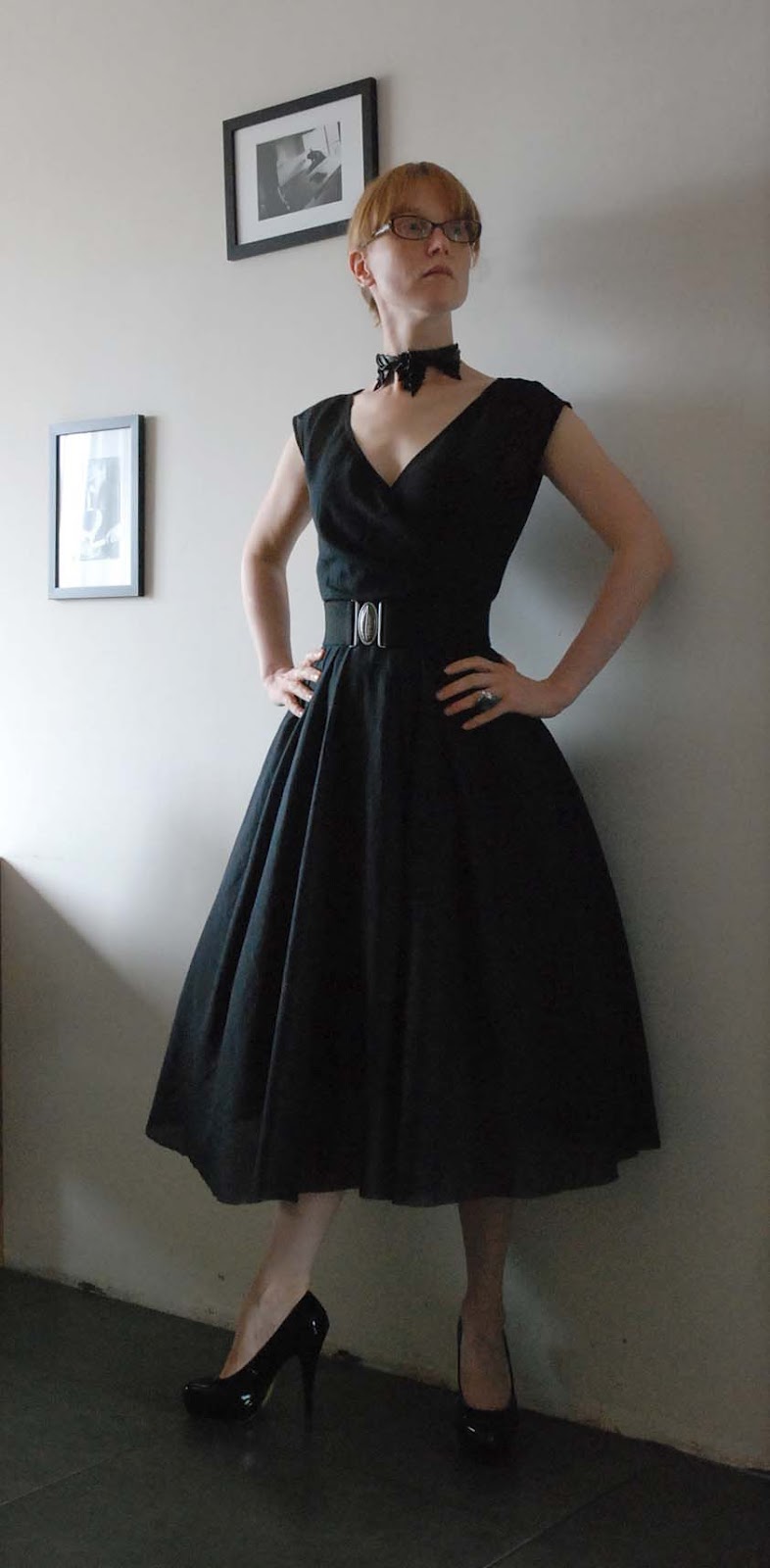 I've made this dress, in a black cotton voile. I'm leaving it to hang for a few days before I hem that half circle skirt. On the one hand, it is nice although it still needs a slip and possibly a crinoline petticoat (which I haven't made yet). On the other, it's black. Unmistakebly so.